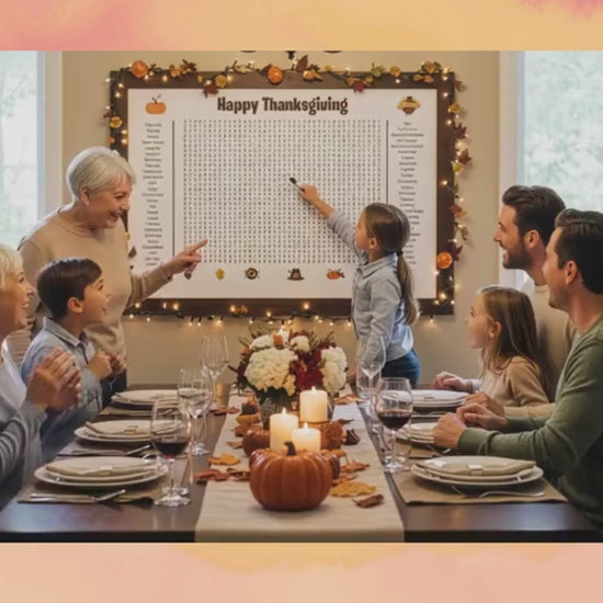 Bring the whole family together this holiday season with our larger-than-life Thanksgiving & Christmas Word Search Poster! Perfect for decorating your space and keeping guests entertained, this jumbo wall game turns any gathering into a fun, interactive experience.